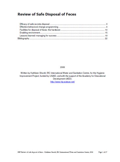 Background: Pit latrines are one of the most common human excreta disposal systems in low-income countries, and their use is on the rise as countries aim to meet the sanitation-related target of the Millennium Development Goals. There is concern, however, that discharges of chemical and microbial contaminants from pit latrines to groundwater may negatively affect human health.