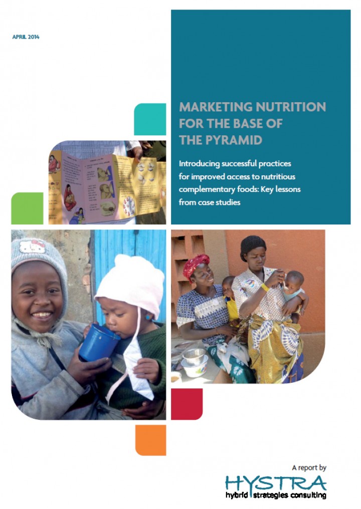 A range of solutions has been developed to improve the quality of nutrition during the critical first 1,000 days of life. Little is known however about the potential contribution of market-based solutions. This report learns from the successes and failures of best practice organizations that successfully sell nutritious complementary foods and supplements for 6-24 month old infants to BoP …