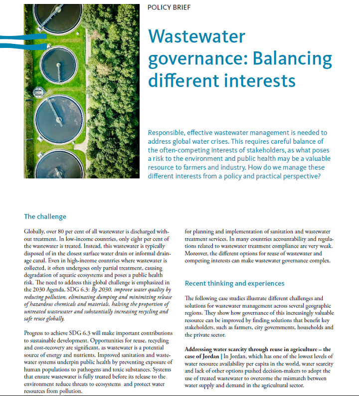 Responsible, effective wastewater management is needed to address global water crises. This requires careful balance of the often-competing interests of stakeholders, as what poses a risk to the environment and public health may be a valuable resource to farmers and industry. How do we manage these different interests from a policy and practical perspective?