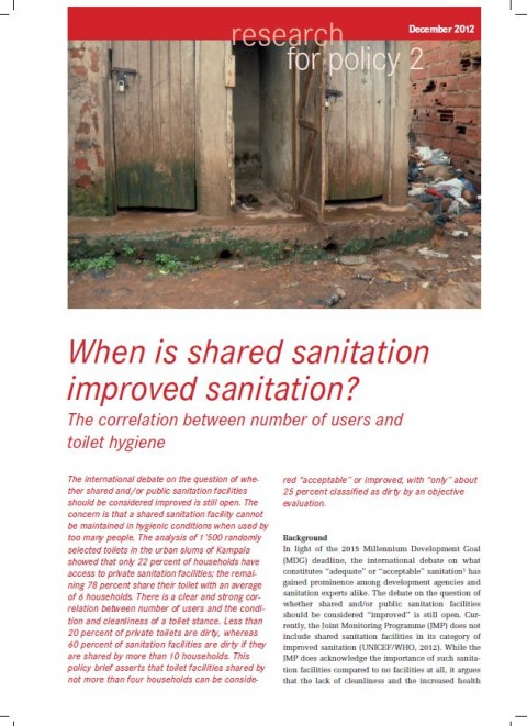 The international debate on the question of whether shared and/or public sanitation facilities should be considered improved is still open. The concern is that a shared sanitation facility cannot be maintained in hygienic conditions when used by too many people. The analysis of 1’500 randomly selected toilets in the urban slums of Kampala showed that only 22 percent of households have access to …