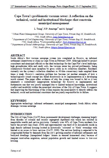 Onsite sanitation systems are the predominant sanitation option worldwide (Medland et al., 2015). High population density in cities in low-middle income countries means that faecal sludge (FS) from onsite systems cannot be managed safely onsite. This creates a need for safe management of the FS through the sanitation service chain (SSC) (Hawkins et al. 2013). The movement of FS and wastewater …