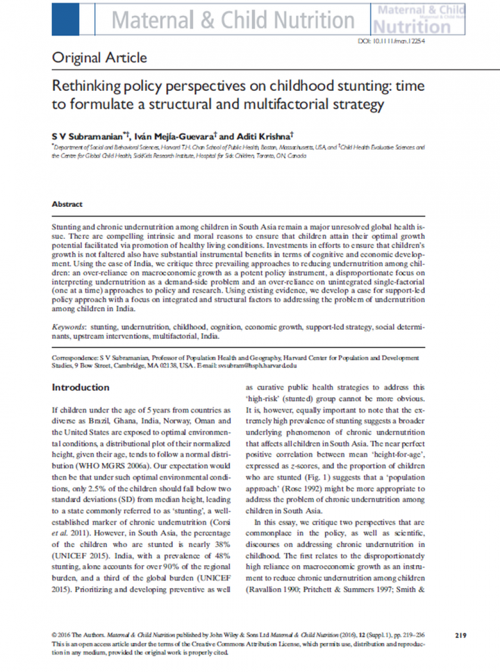 Stunting and chronic undernutrition among children in South Asia remain a major unresolved global health issue.
