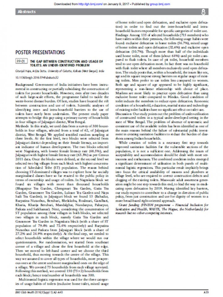 toilets for poorer households. However, even after two decades of such large-scale efforts, the programme failed to tackle the water-borne disease burden. Of late, studies have located the rift between construction and use of toilets. Scientific analyses of identifying inter- and …