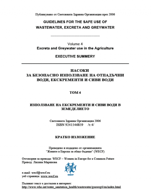 This volume of the WHO's Guidelines for the safe use of wastewater, excreta and greywater describes the present state of knowledge regarding the impact of excreta and greywater use in agriculture on the health of product consumers, workers and their families and local communities. Health hazards are identified for each group at risk, and appropriate health protection measures to mitigate the …