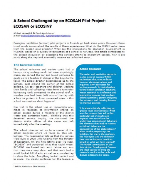 We are hosting content from some other communities of practice and information-sharing portals. This section also provides a link to SuSanA's Sanitation Wikipedia initiative.